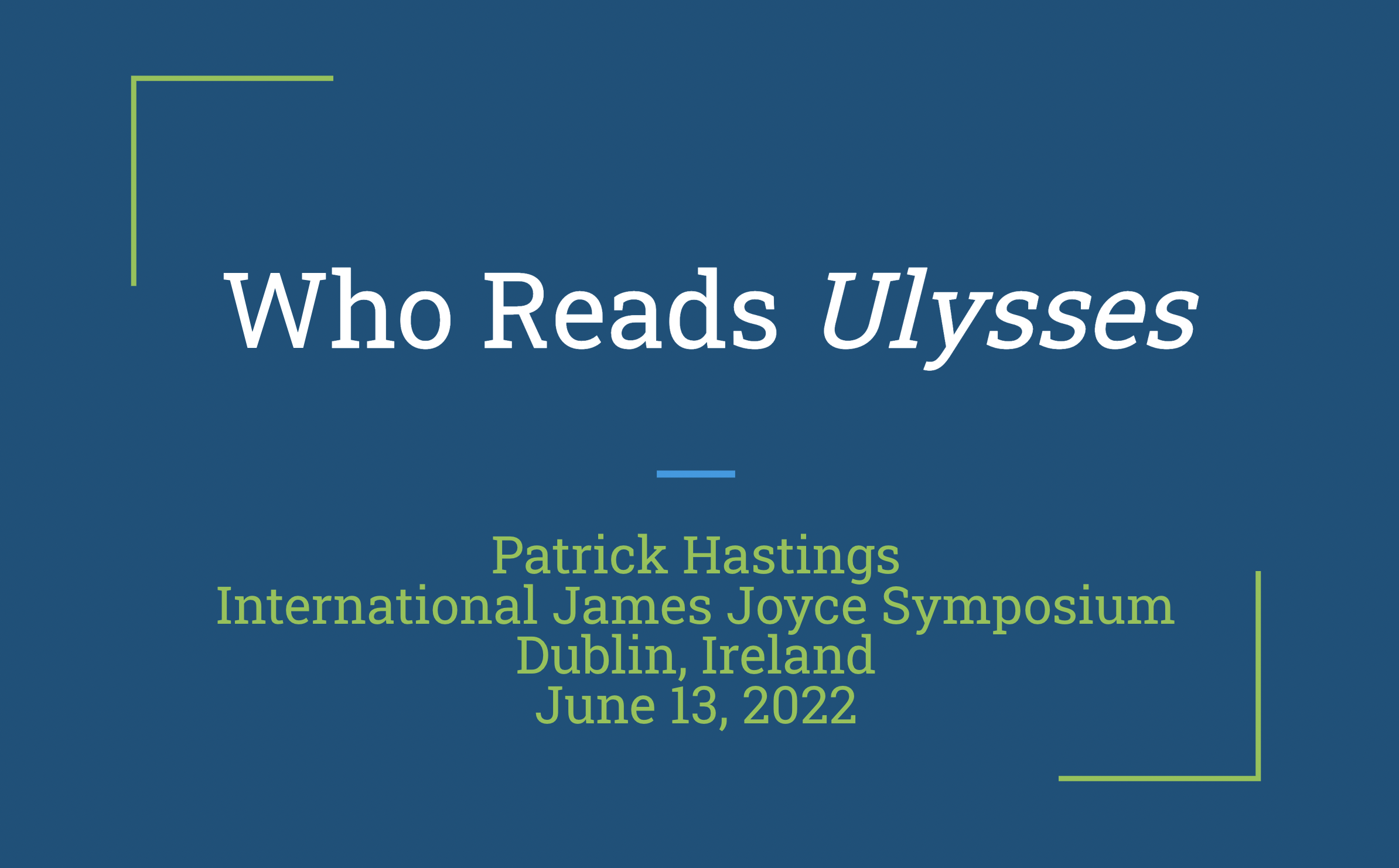 I was fortunate enough to have the opportunity to present to the International James Joyce Symposium on the topic of “Who Reads Ulysses,” using data I’ve gathered pertaining to users of UlyssesGuide.com. Preparing this presentation required me to spend more time in spreadsheets than should be allowed for an English teacher, but I was really interested in explaining the demographics and reading habits of folks who read this novel.